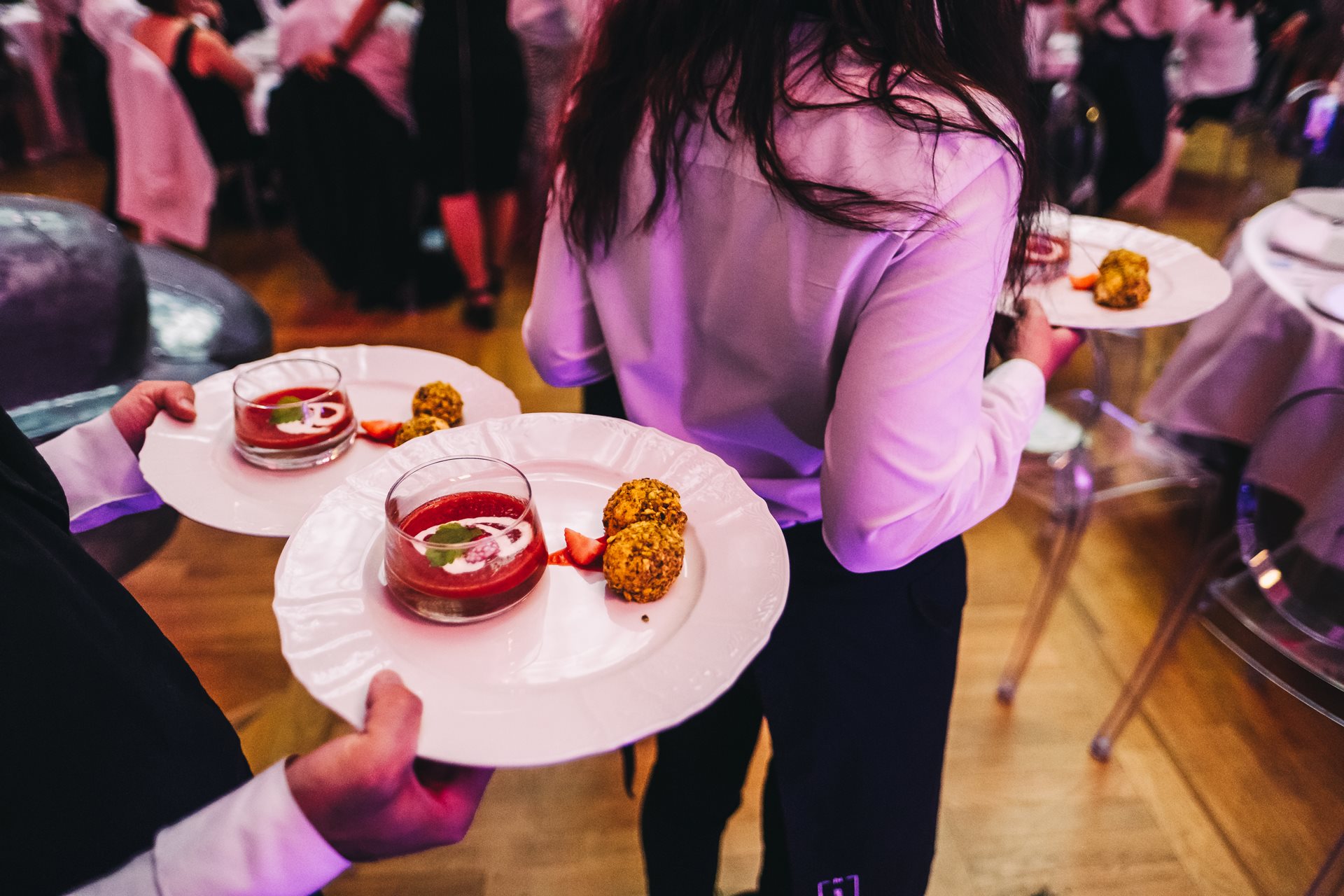 září 2022 | Opět jsme měli příležitost ukázat, co v Zátiší umíme, a to v prostorách historického paláce Žofín. Skoro čtyři stovky hostů si mohli užít naše jídlo a pití pod monumentálními lustry hlavního tanečního sálu, které předtím již pozorovaly desítky významných večeří a plesů s hosty z celého světa. Synchronizované skupiny číšníků hostům servírovali jeden chod za druhým a hosté se nechávali hýčkat chutěmi pokrmů od našich mistrů kuchařů.