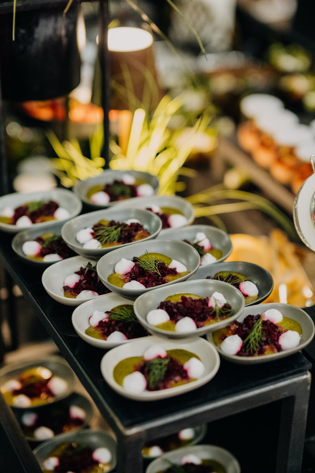 February 2020 | We have prepared daily refreshments in the form of buffet tables for 600 participants of the Philip Morris International ČR conference. The subsequent after party with the evening banquet was enriched by a taco bar, an edible park - skewers with edible sponge bread - black buns with shredded pork or favorite lollipops made of goat cheese in beet dust. Guests were also entertained by a tartare show or our chocoland.