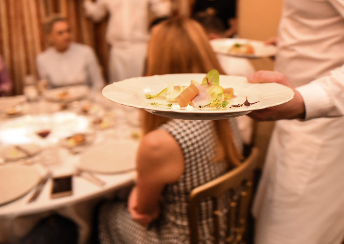 September 2022 | We once again had the opportunity to use the premises of the historic Žofín Palace to show off what we are up to at V Zátiší. Almost 400 guests loved what they ate and drank under the monumental chandeliers of the Žofín main ballroom, which had previously been the venue for dozens of important dinners and balls with guests from all over the world. Perfectly synchronized groups of waiters served the guests one course after another, pampering them with extraordinary dishes prepared by our master chefs.