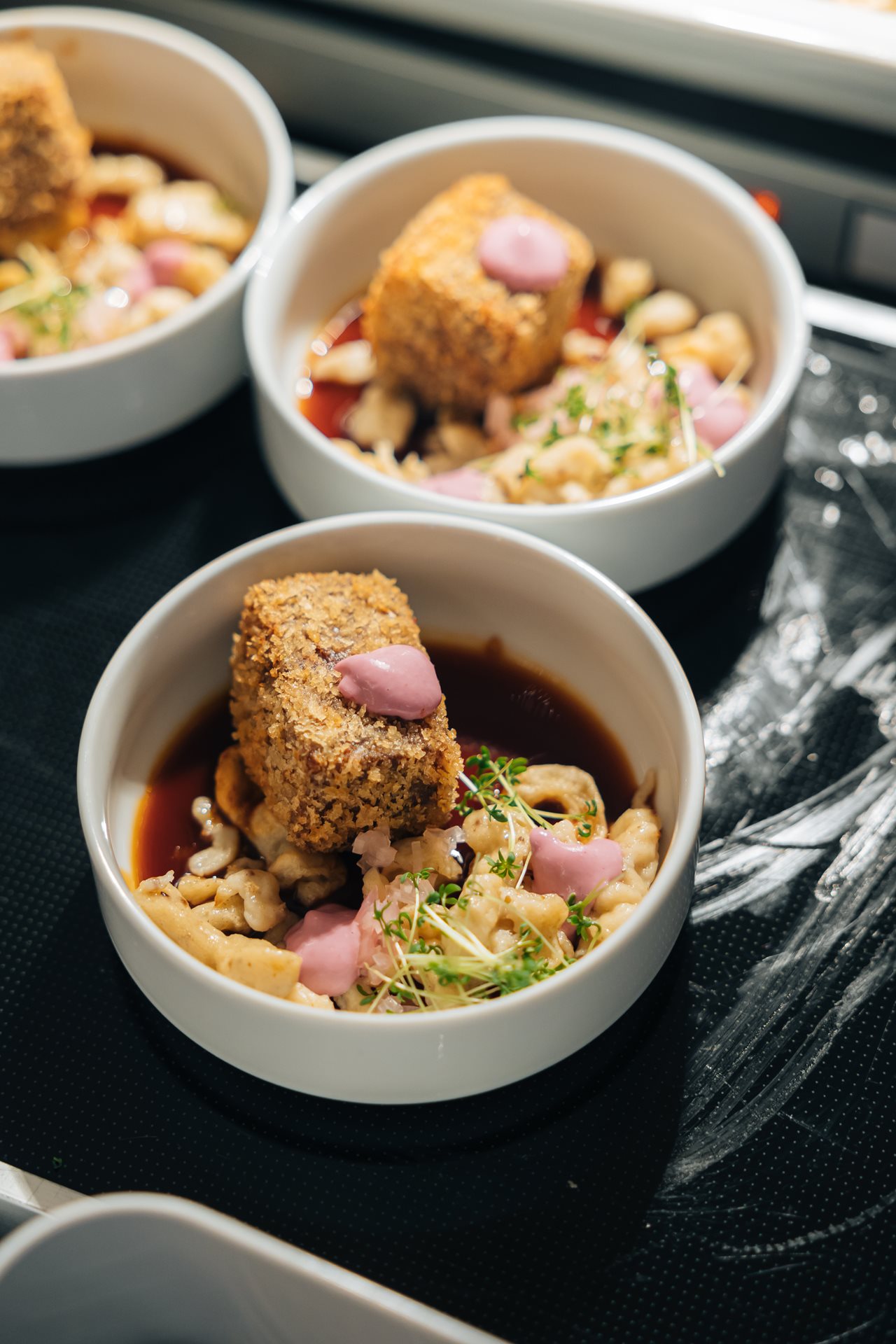 November 2017 | At the special occasion ‘Czech 100 Best’ in Prague Castle we prepared food all day for 700 guests which was accompanied by an official ceremony. We combined the best of our catering offerings and Zátiší Group restaurants. In our buffet we were serving octopus salad, Italian delicacies from our ‘focaccia station’ and we introduced our ‘vegetable garden’. In front of our guests we prepared fresh caprese or we painted with food our special Meringue cake (Pavlova cake) with fresh fruit and whipped cream.