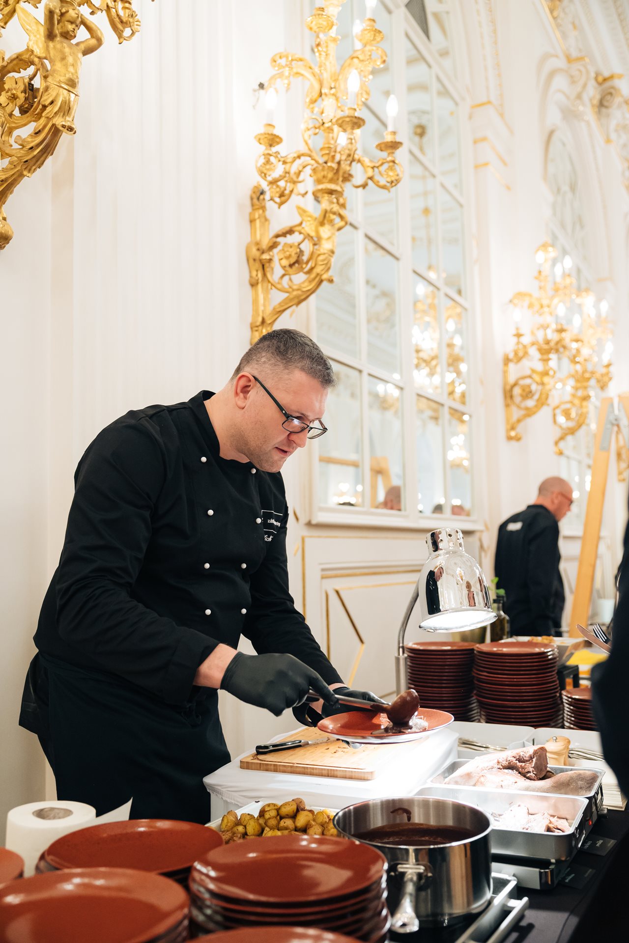 October 2017 | To be able to entertain not only the bride and groom but also all the Russian/Jewish wedding guests according to their original traditions, we hired a special master chef from Russia. He prepared delicacies such as caviar, pelmeni or pierogi. The menu from our kitchen consisted of oysters, flap steak and salmon. Our guests were celebrating and having a really good time until early morning hours.