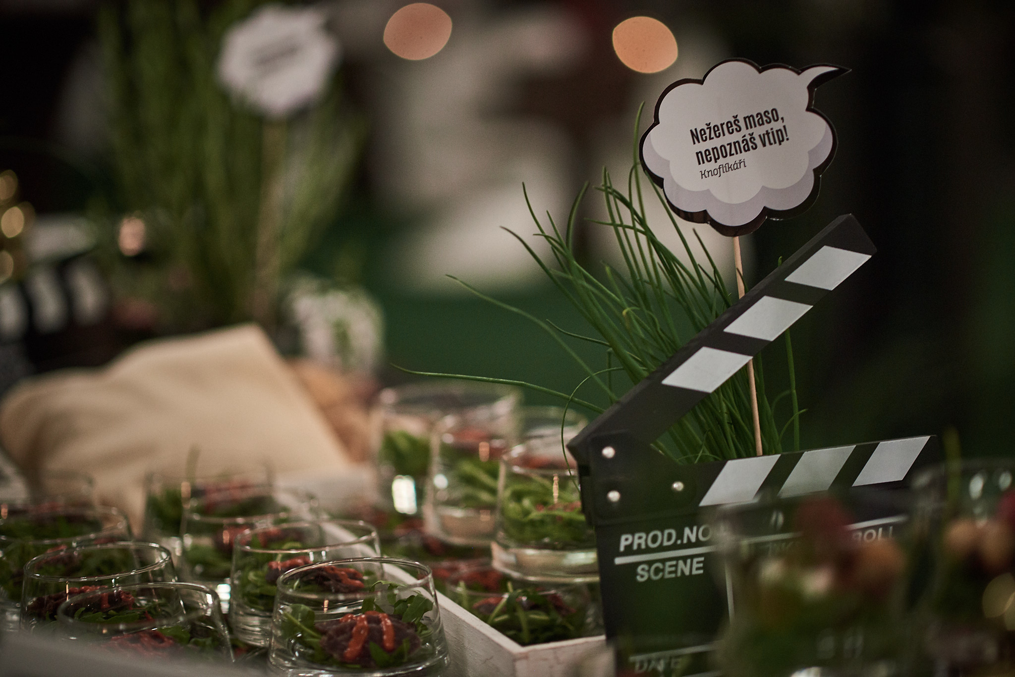 February 2020 | We have prepared daily refreshments in the form of buffet tables for 600 participants of the Philip Morris International ČR conference. The subsequent after party with the evening banquet was enriched by a taco bar, an edible park - skewers with edible sponge bread - black buns with shredded pork or favorite lollipops made of goat cheese in beet dust. Guests were also entertained by a tartare show or our chocoland.