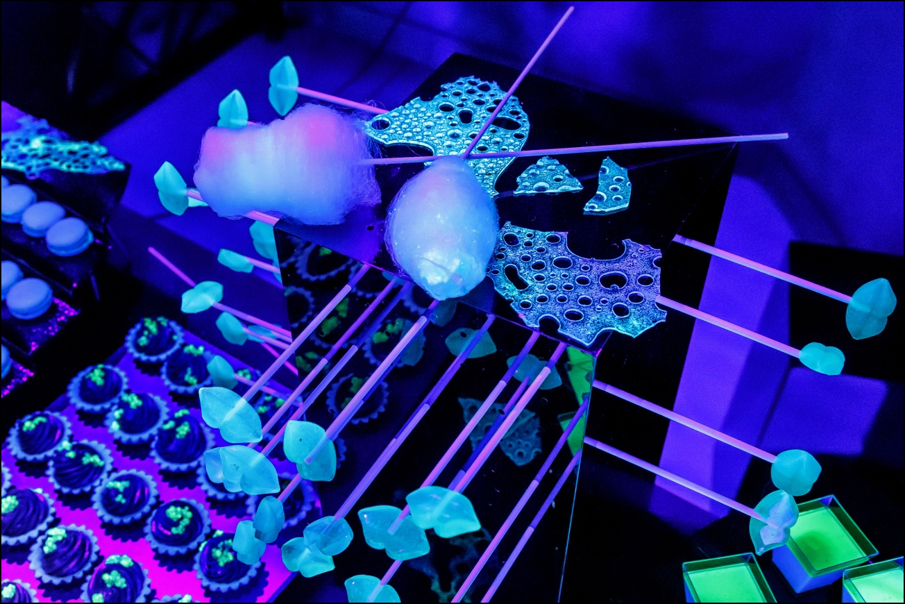 October 2018 | As part of the Prague Signal Festival, we collaborated with QUIX on the NEON FOOD LOUNGE - a big neon party in the tent of the Žofín Garden restaurant. Under UV lights everything glowed, the guests as well as drinks and sweets. Our guests enjoyed Prosecco with UV passion fruit caviar, bubble tea with lychee or neon magnums, ice cream, waffles, panna cotta, donuts and much more. For the very hungry, our food truck offered hot meals, such as poutine, hotdogs and burgers.